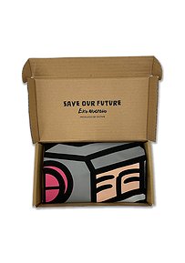 Bagian dari pameran instalasi seni “Save Our Future” karya Eko Nugroho di Kin Space. Mengusung semangat cinta, solidaritas, dan harapan dalam wajah visual yang khas, sarung bantal ini bukan sekadar elemen dekoratif, tapi juga medium untuk membawa karya seni ke ruang personal.